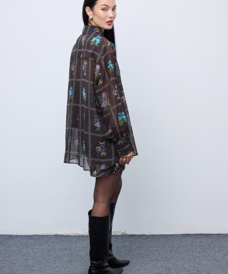 Το oversized πουκάμισο Mocha Blossom είναι ένα κομμάτι που ισορροπεί τέλεια την τέχνη και τη μόδα. Αυτό το συγκεκριμένο πουκάμισο ξεχωρίζει για την προσεκτικά τοποθετημένη στάμπα του, δημιουργώντας μια συμμετρική και αρμονική αισθητική. Η oversized σιλουέτα του προσφέρει κίνηση και άνεση, ενώ οι διακριτικές μανσέτες και ο γιακάς προσθέτουν μια διακριτική αίσθηση δυναμισμού. Είναι ένα διαχρονικό κομμάτι που αποπνέει αυτοπεποίθηση και χαρακτήρα, συνδυάζοντας όμορφα με την ασορτί φούστα.