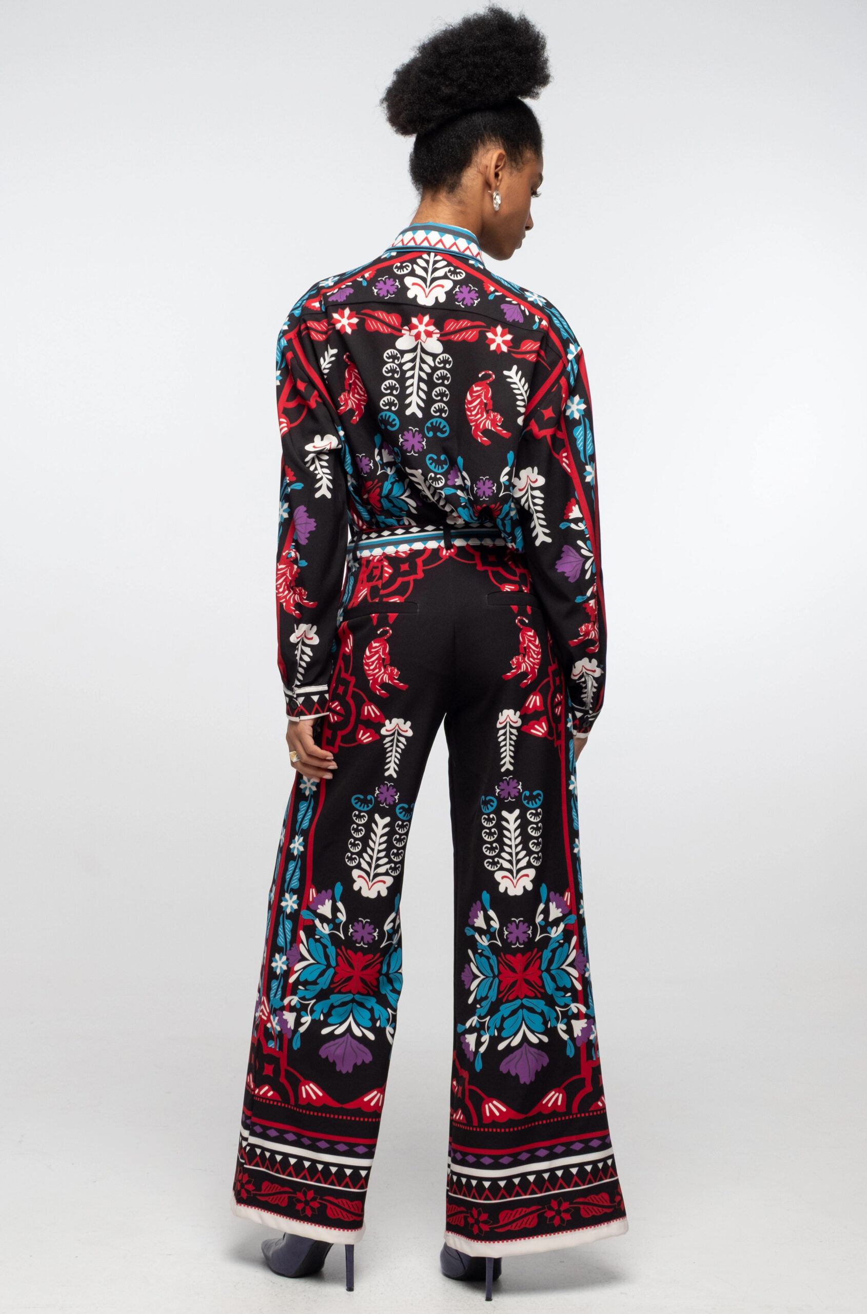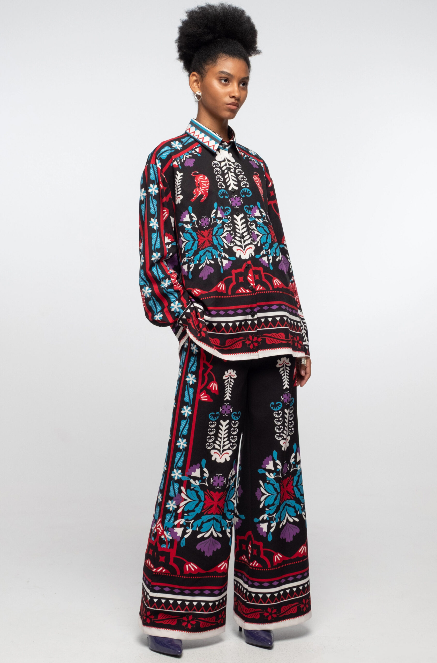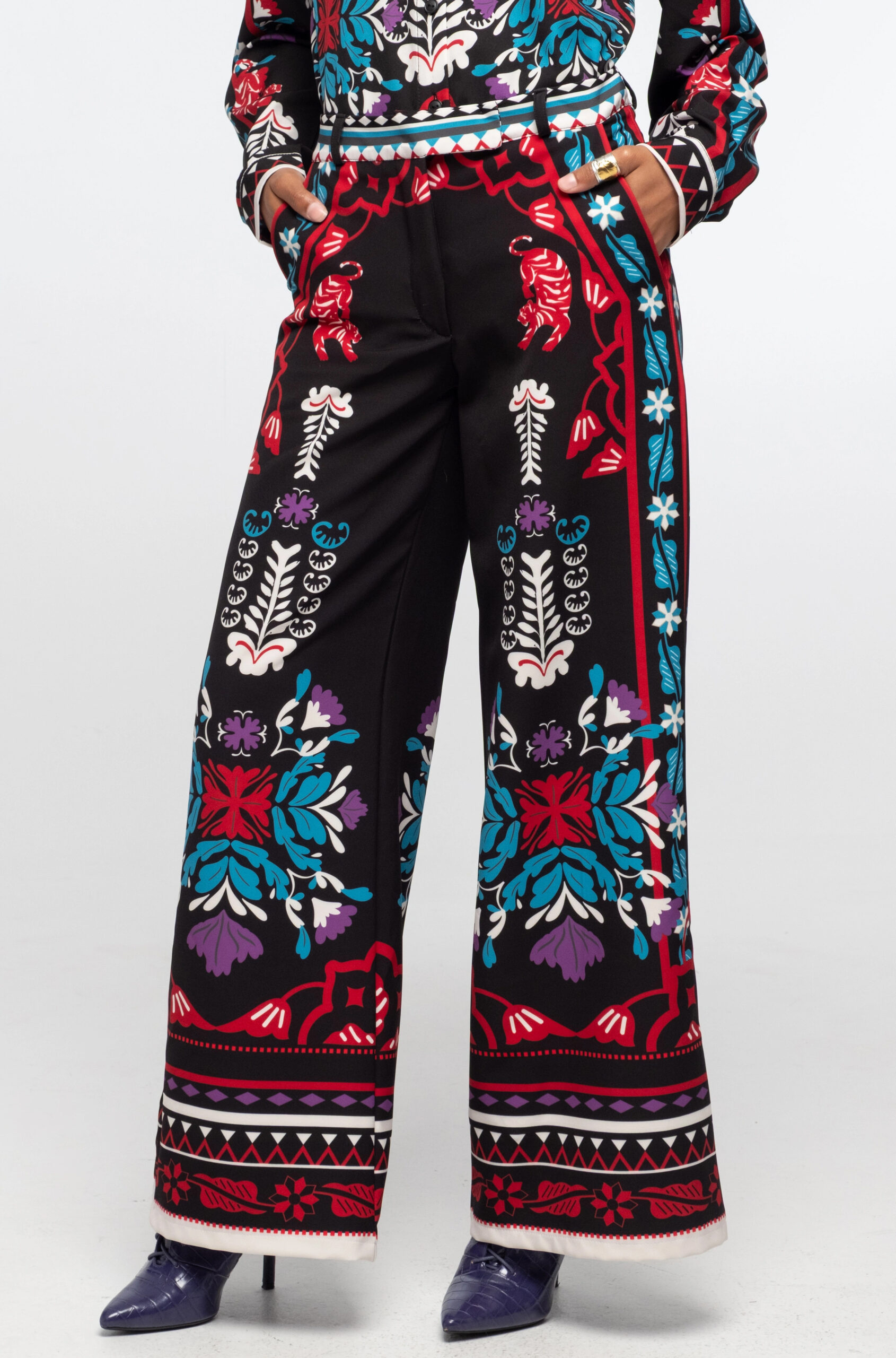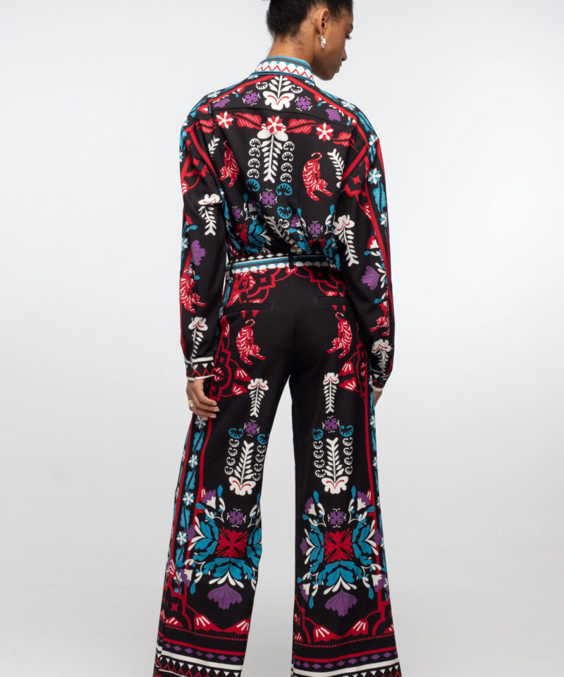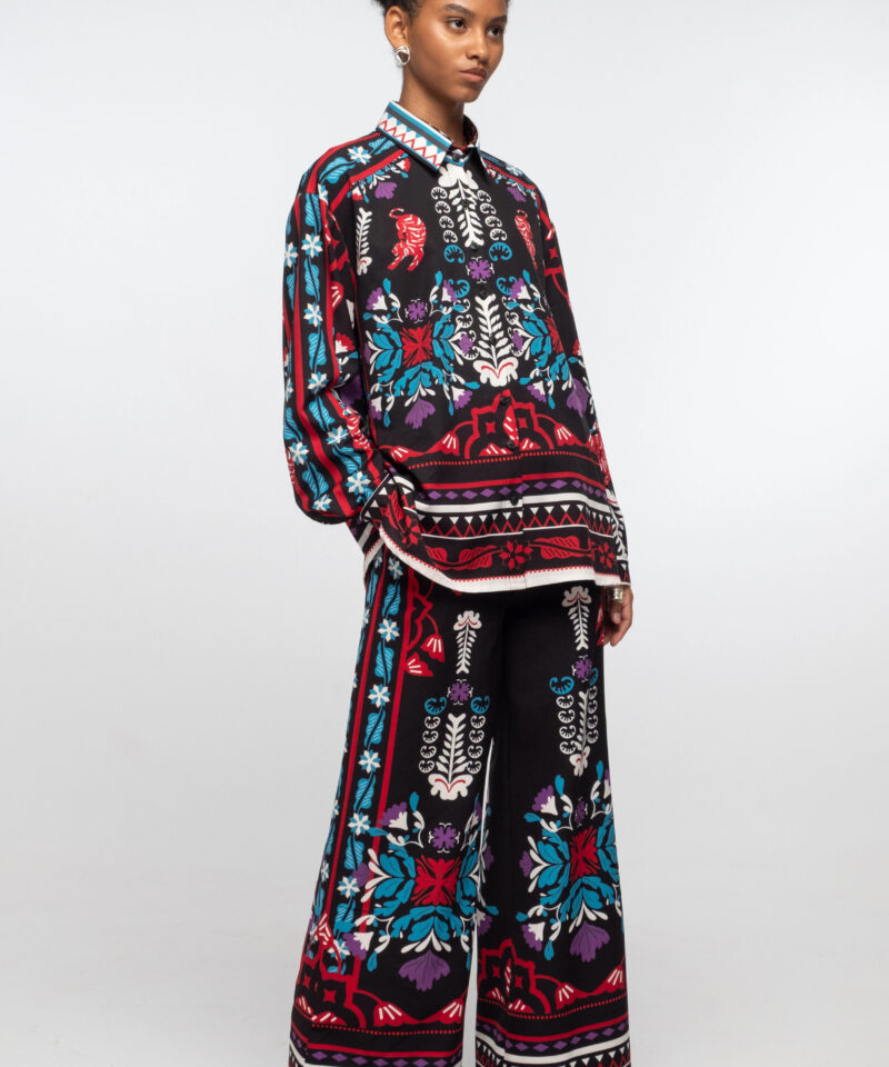 Το φαρδύ, ίσιο Mythical Pants με μοτίβο από λουλούδια, κολακεύει τη σιλουέτα και έχει πλαϊνές τσέπες, θυλάκια για την ζώνη και ψεύτικες διακοσμητικές τσέπες στο πίσω μέρος. Συνδυάστε το με το μωβ Vital Top ή μαζί με το ασορτί Mythical Shirt για ένα ολοκληρωμένο look.