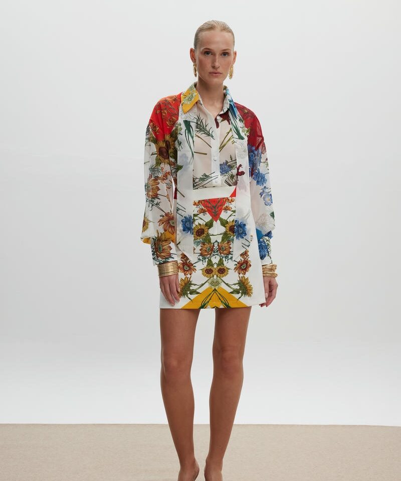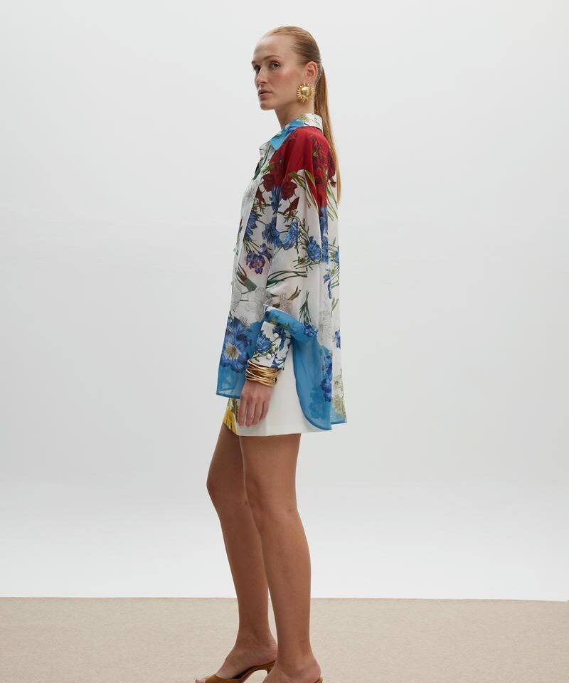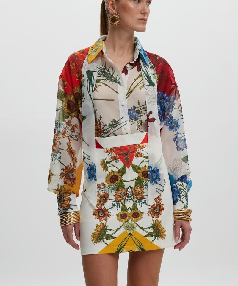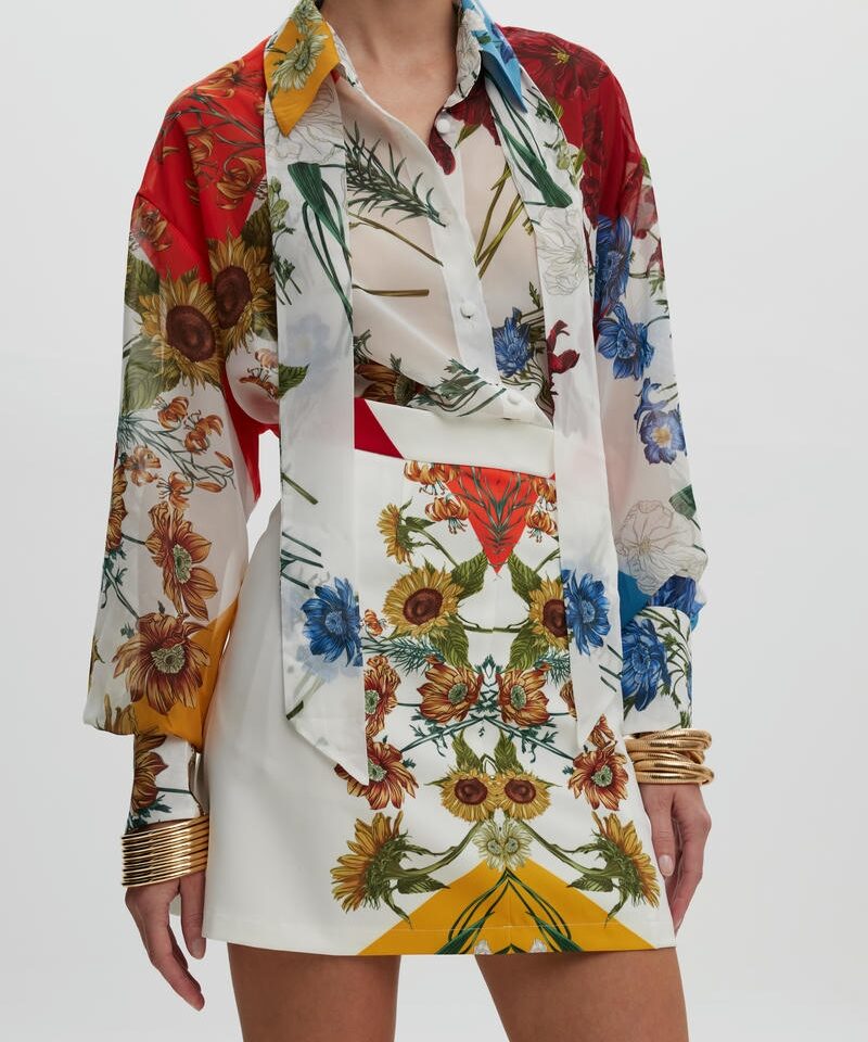 Το Spring Blossom Shirt είναι να κομμάτι που ισορροπεί ανάμεσα στην τέχνη και την μόδα. Ξεχωρίζει για το προσεκτικά τοποθετημένο print του , δημιουργώντας μια συμμετρική και αρμονική αισθητική. Η oversized γραμμή του προσφέρει κίνηση και άνεση ενώ οι διακριτικές μανσέτες και ο γιακάς προσθέτουν μια διακριτική αίσθηση δυναμισμού.Πρόκειται για ένα διαχρονικό statement κομμάτι που αποπνέει αυτοπεποίθηση και χαρακτήρα. Συνδυάζεται υπέροχα με την αντίστοιχη φούστα. Handpainted print, το οποίο σχεδιάστηκε αποκλειστικά για την SS25 CIEL CONCEPT COLLECTION.