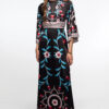 Η ζώνη και οι λεπτομέρειες με διαφορετικό σχέδιο κάνουν το φόρεμα να δείχνει πιο μακρύ και κομψό. Τα μακριά μανίκια είναι φαρδιά και τελειώνουν με ελαστικό τελείωμα που δίνει μια ρομαντική αίσθηση. Έχει κλασικό γιακά που στέκεται όρθιος, V λαιμόκοψη και κουμπιά μπροστά, κάνοντάς το κατάλληλο από το πρωί μέχρι το βράδυ.