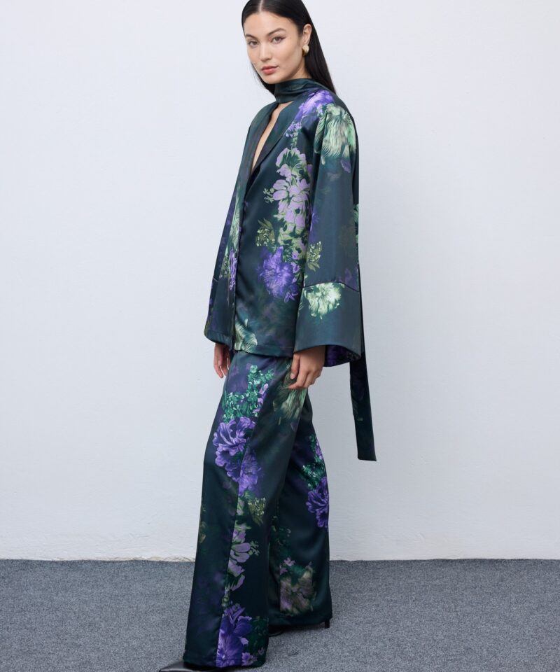 Το σετ πιτζάμας Vittoria συνδυάζει την ρευστή κομψότητα με την τολμηρή τέχνη – ένα πραγματικό κομμάτι για κάθε σύγχρονη μούσα. Κατασκευασμένο από ένα απαλό, ρέον ύφασμα που κινείται όμορφα με το σώμα, αυτό το σετ διαθέτει χαλαρή σιλουέτα, φαρδύ παντελόνι και βαθύ ντεκολτέ V για μια πινελιά διακριτικής γοητείας. Το τύπωμά του αποτυπώνει το πνεύμα της ελευθερίας και της σύγχρονης θηλυκότητας – ιδανικό τόσο για εκλεπτυσμένες βραδινές εξόδους όσο και για κομψές εξόδους.