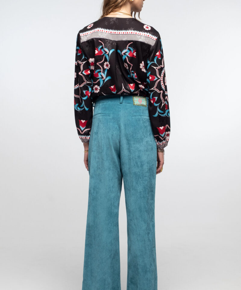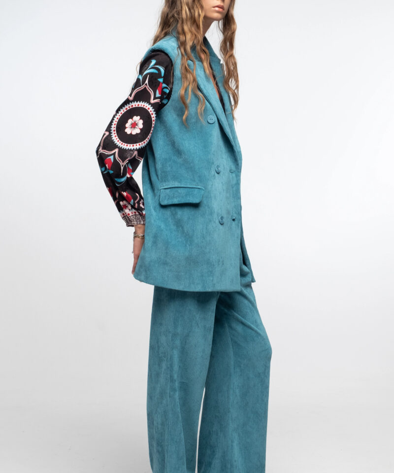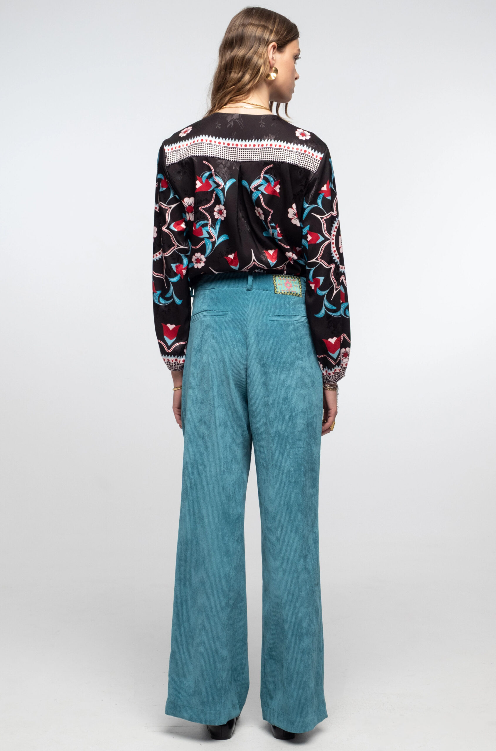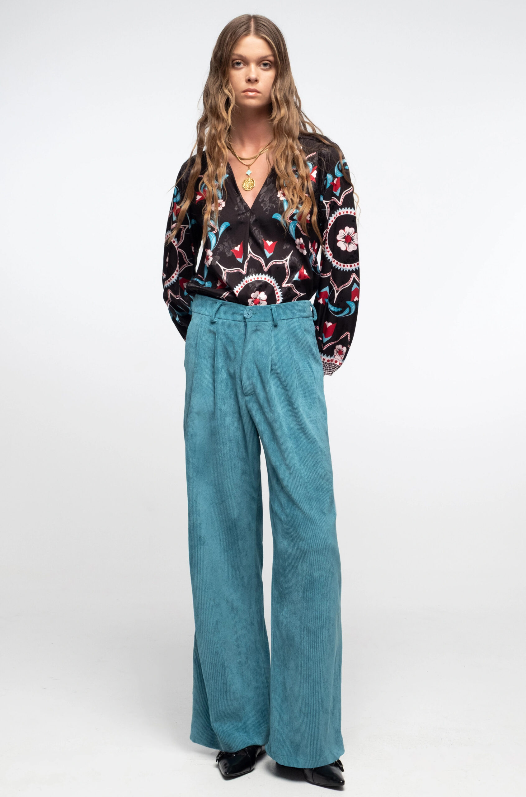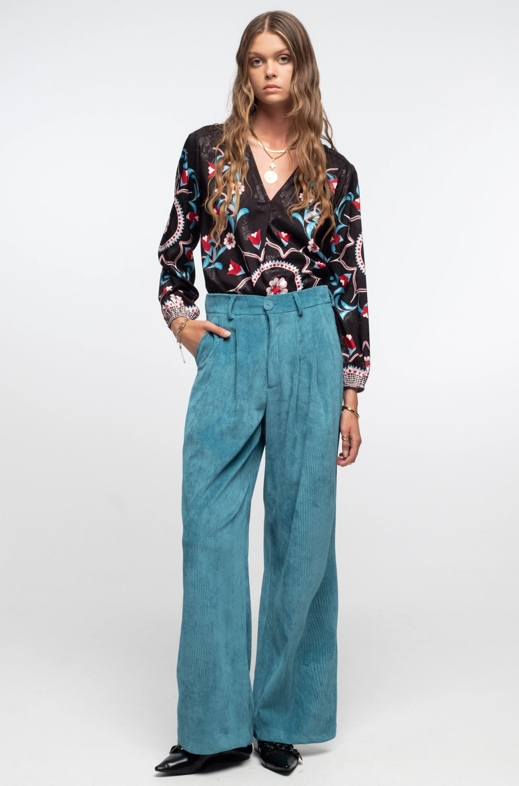 Φαρδύ κοτλέ παντελόνι με πιέτες και τσέπες.