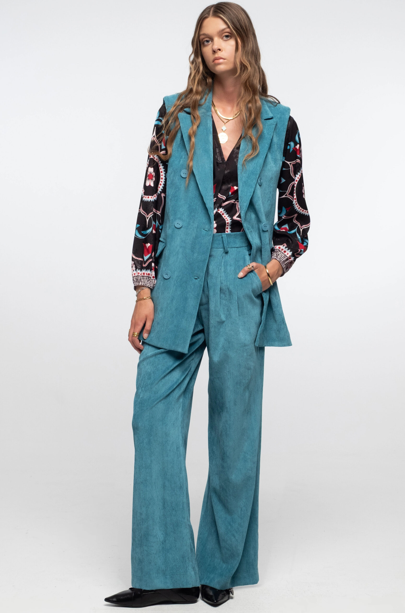 Το Willow Pants είναι φαρδύ παντελόνι κοτλέ με πιέτες και τσέπες. Κλείνει μπροστά με κουμπί και φερμουάρ, έχει θυλάκια για την ζώνη και υφαντή ετικέτα P+C. Φορέστε το με το ασορτί Willow Sleeveless Blazer και ένα top σε ταιριαστή απόχρωση, όπως το Garland ή το Romancer Top, για ένα κομψό look στο γραφείο.