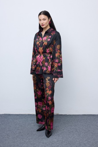 Το σετ πιτζάμας Winter Bloom συνδυάζει την ρευστή κομψότητα με την τολμηρή τέχνη – ένα πραγματικό κομμάτι για κάθε σύγχρονη μούσα. Κατασκευασμένο από ένα απαλό, ρέον ύφασμα που κινείται όμορφα με το σώμα, αυτό το σετ διαθέτει χαλαρή σιλουέτα, φαρδύ παντελόνι και βαθύ ντεκολτέ V για μια πινελιά διακριτικής γοητείας. Το τύπωμά του αποτυπώνει το πνεύμα της ελευθερίας και της σύγχρονης θηλυκότητας – ιδανικό τόσο για εκλεπτυσμένες βραδινές εξόδους όσο και για κομψές εξόδους.