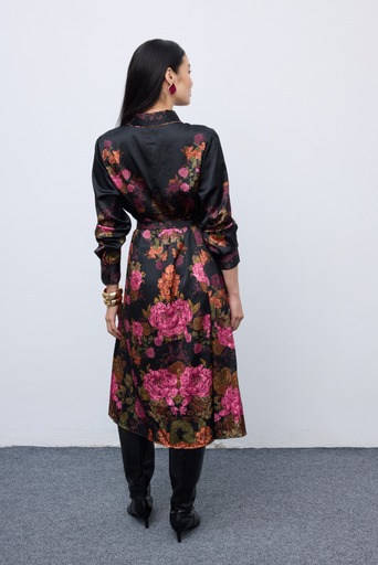 Το φόρεμα-πουκάμισο Winter Bloom είναι φτιαγμένο από απαλό τυπωμένο ύφασμα με διακριτικό floral print. Ένα κομψό φόρεμα-πουκάμισο με εξαιρετική εφαρμογή, διαθέτει μανσέτες, γιακά μάο και κουμπιά καλυμμένα με ύφασμα. Διαθέτει επίσης φαρδιά ζώνη που μπορεί να φορεθεί με πολλούς τρόπους.